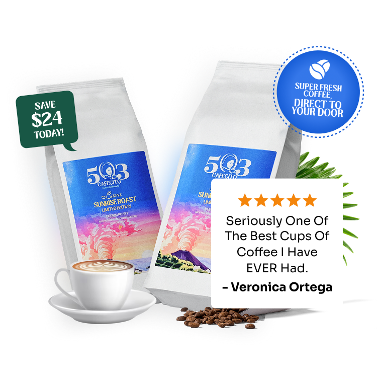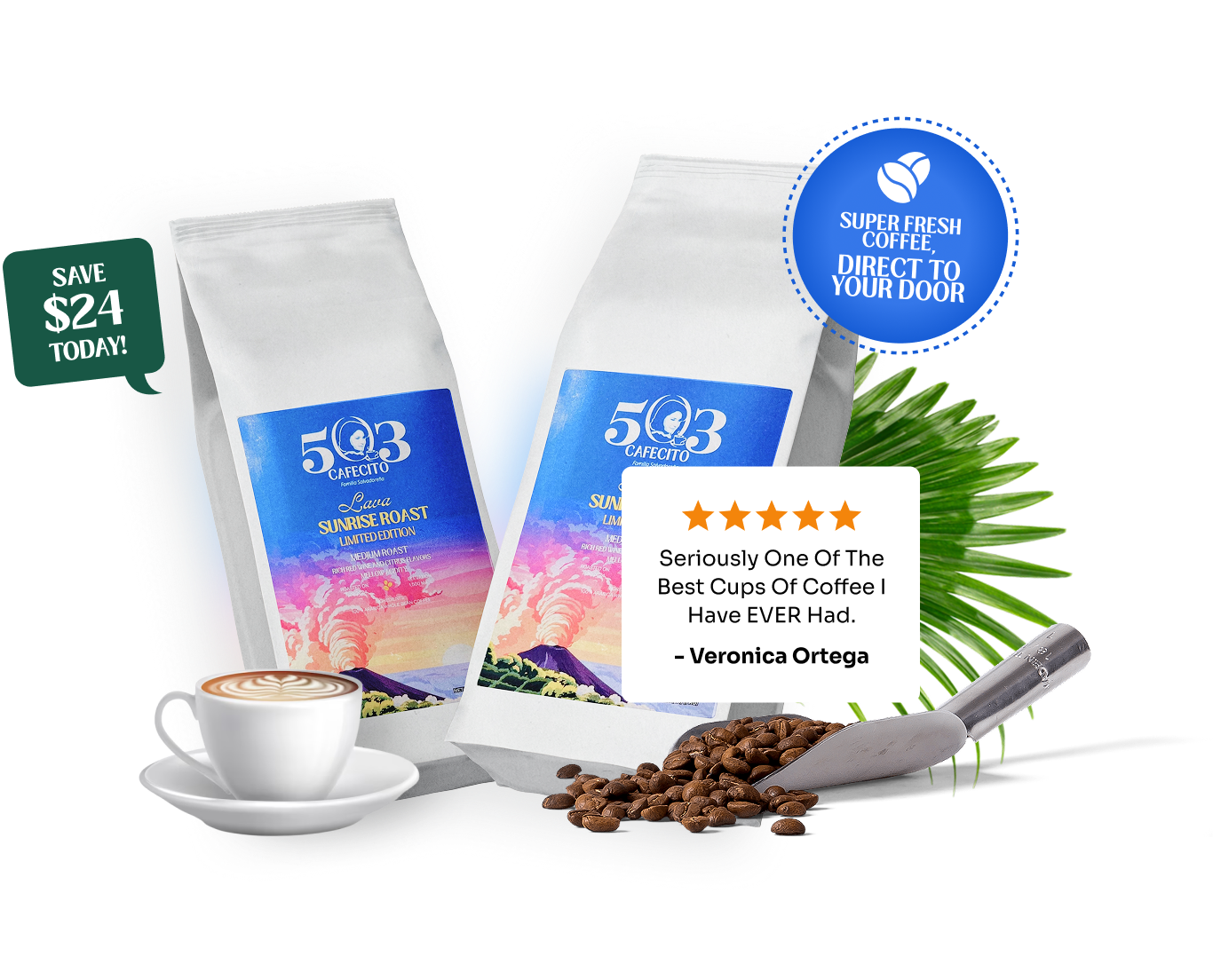 Meanwhile, you're forcing down mold-ridden coffee with a burnt taste, paying $15+ per cup for garbage. Rated 85+ by the Specialty Coffee Association, 503 Cafecito's Lava Sunrise Roast delivers specialty quality at just $45 – that's $24 off our regular price.
